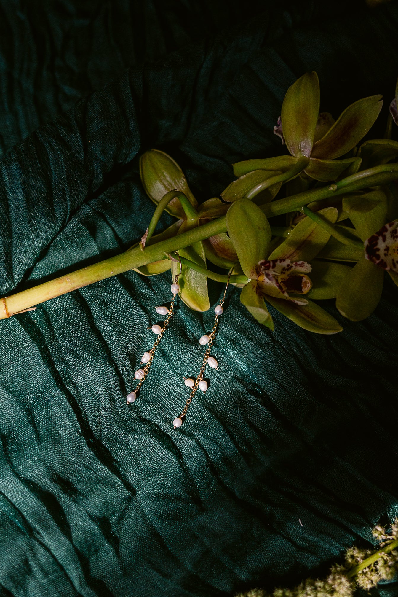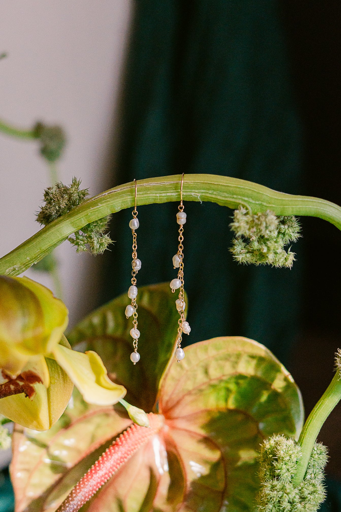 Dainty freshwater seed pearls wrapped around a 14K gold-filled chain. These earrings add a subtle statement to any outfit.