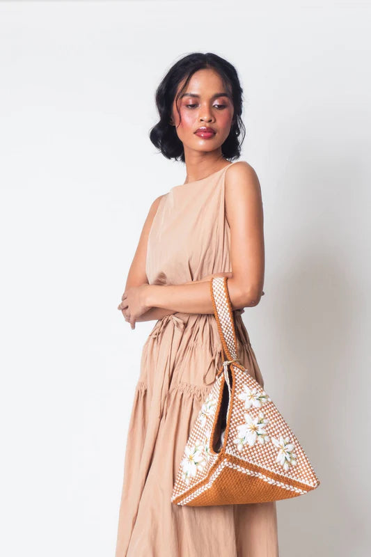The Sampaguita Hobo's versatile shape adapts to your style needs - wear it slouchy for a casual brunch or cinched for an evening look. Its spacious interior, complete with a secure drawstring closure, easily accommodates your essentials from a busy workday to a weekend farmer's market trip.
