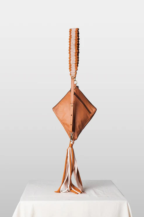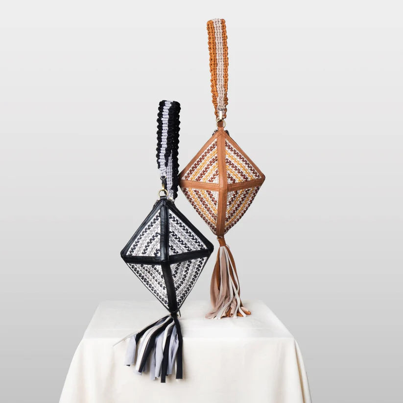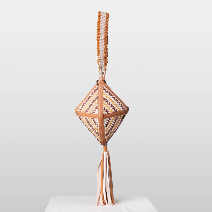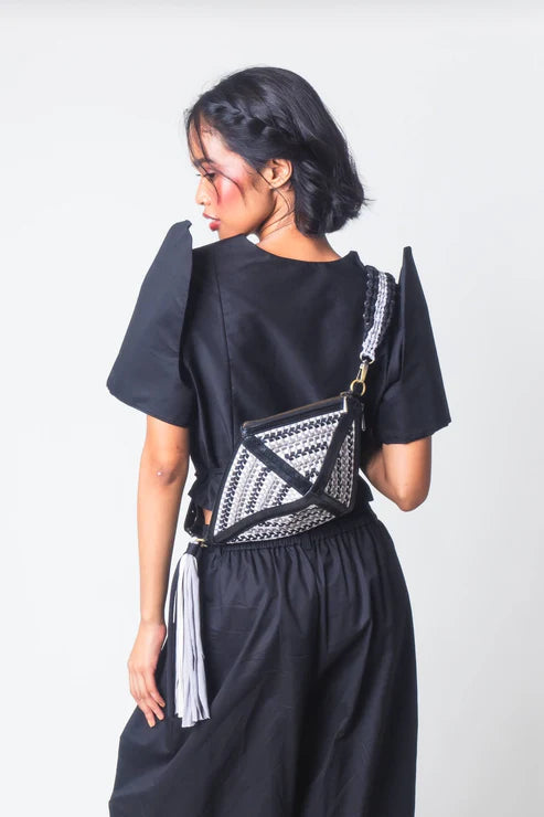 Inspired by the kites of our childhood, the Saranggola is a diamond-shaped crossbody bag that mixes handwoven upcycled fabric, indigenous fabric accents, a tassel detail, and genuine leather trims. It's the perfect playful accessory for casual events or if you just want to heal your inner child. ;)