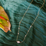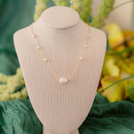 A simple necklace with hand-wrapped freshwater white pearls along a dainty 14K gold-filled chain.