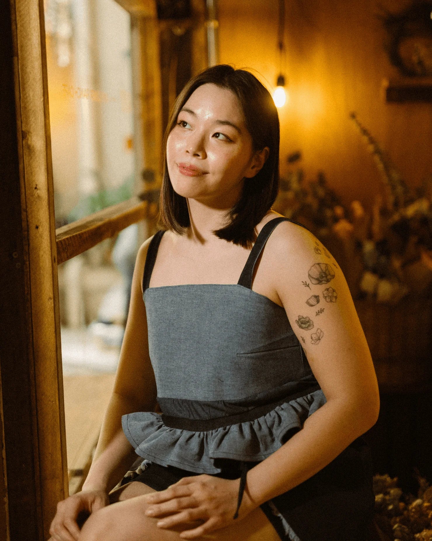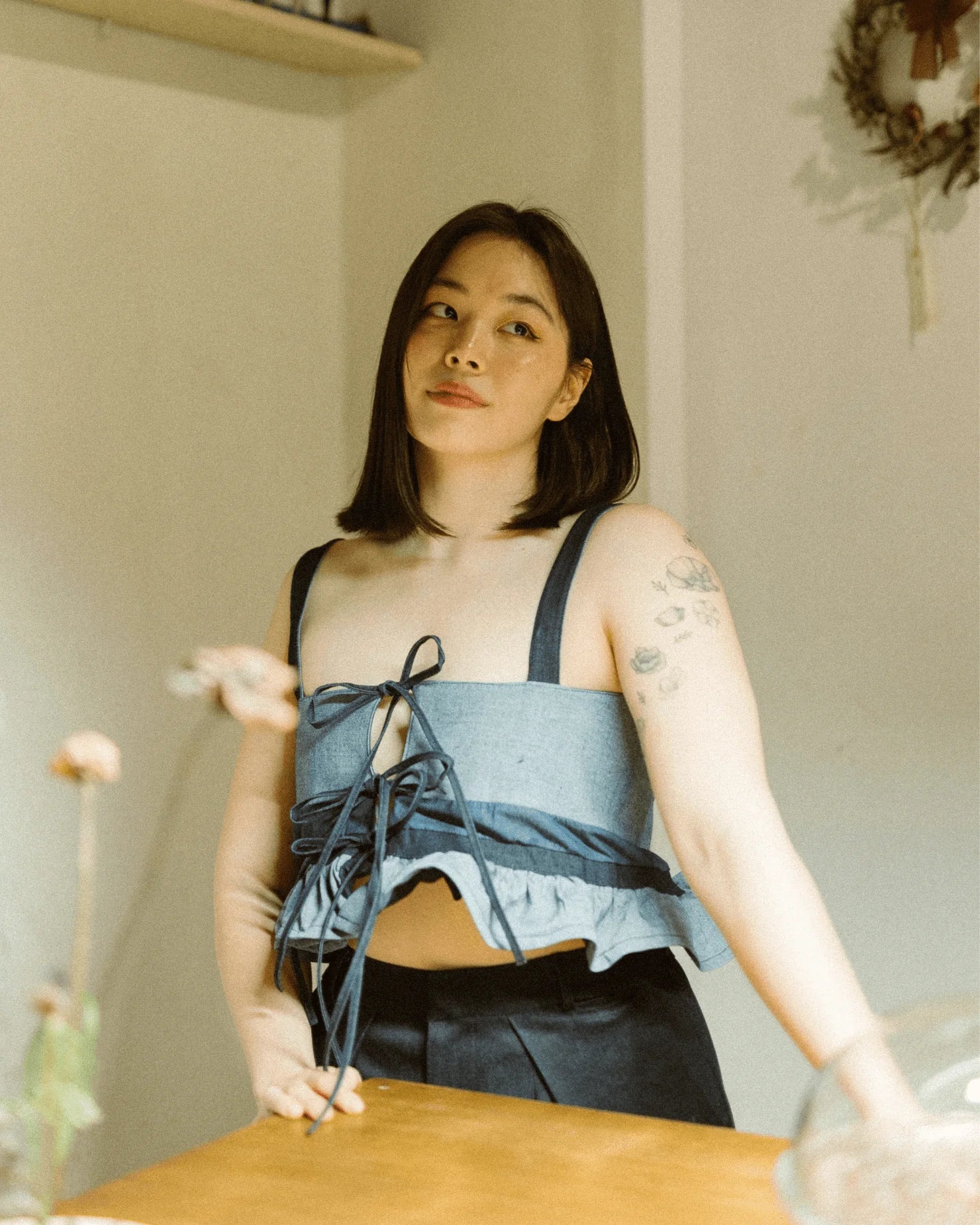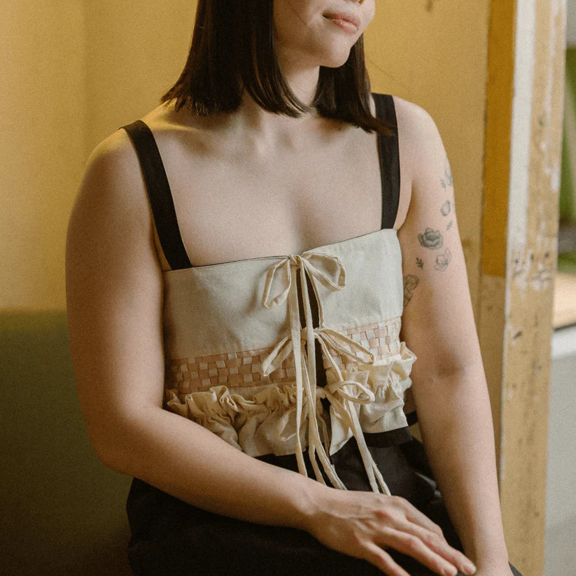 You can also layer the piece as a vest or play around with the ribbons to create different looks. Either way, we promise you'll have fun playing with the piece and wearing it On Repeat.