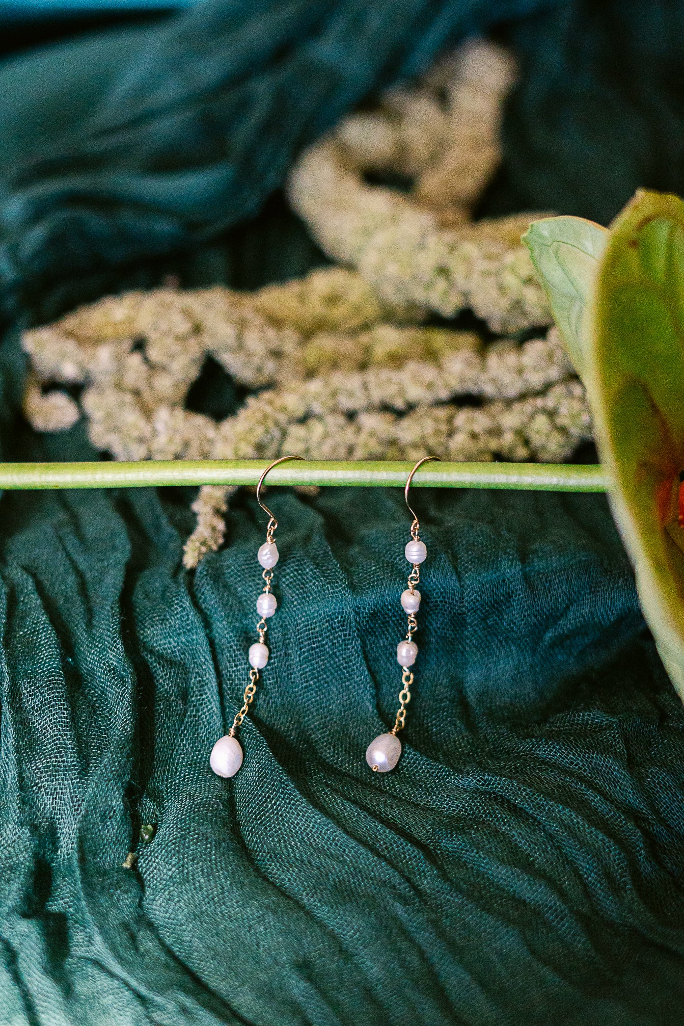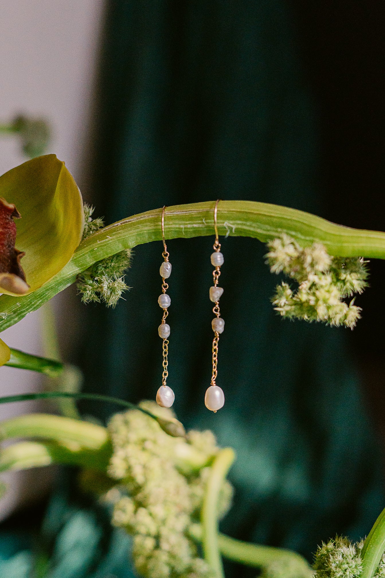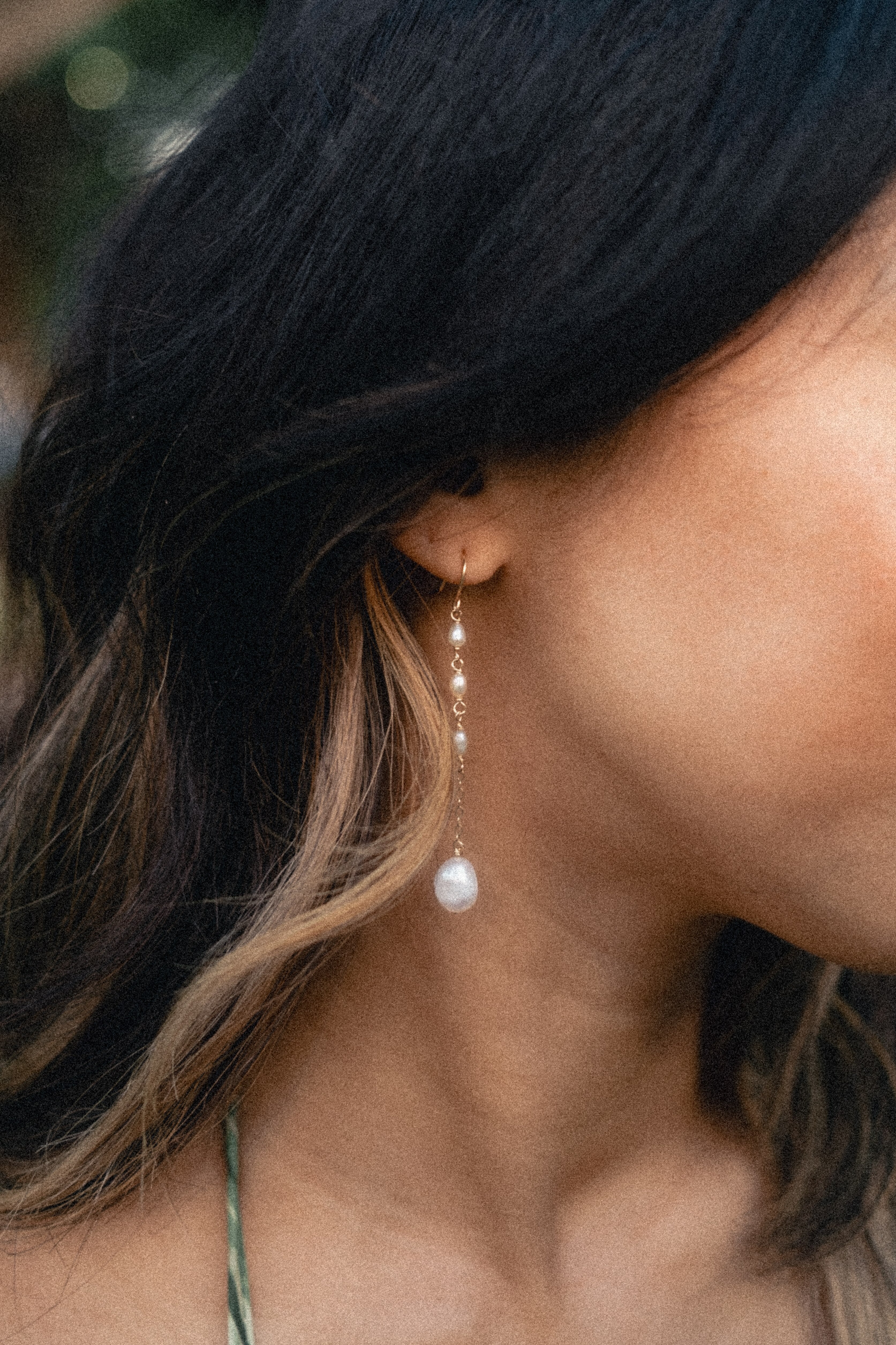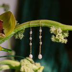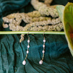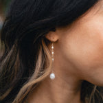 The Jas is a dainty and simple earring that can be paired with any occasion. Hand-wrapped freshwater white pearls with 14K gold-filled wire and chain.