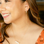 Elevate your elegance with the Triple Disco Pearl Necklace, featuring three luminous mother-of-pearl beads delicately suspended on a 17-inch gold-filled chain. This dainty design offers a refined shimmer perfect for both everyday wear and special occasions, adding a subtle yet sophisticated touch to any ensemble.
